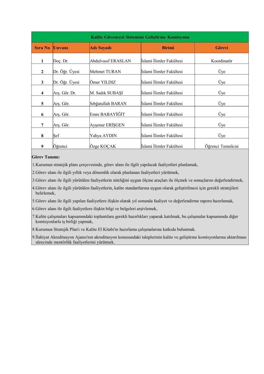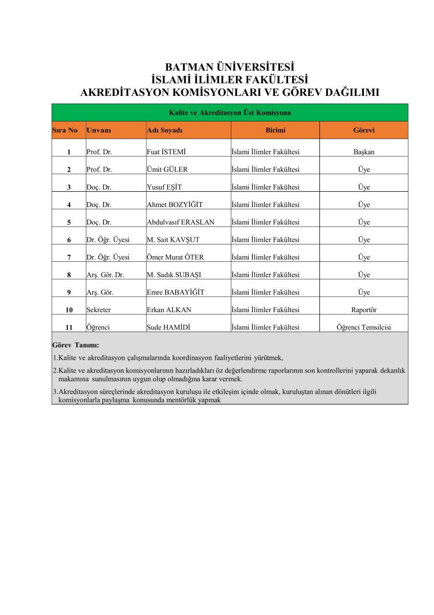 AKREDİTASYON KOMİSYONLARI VE GÖREV DAĞILIMI