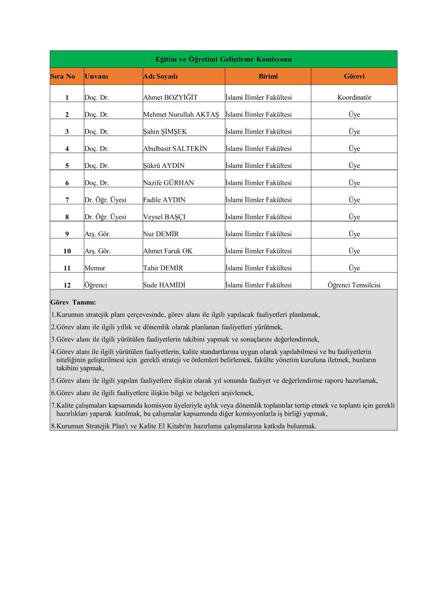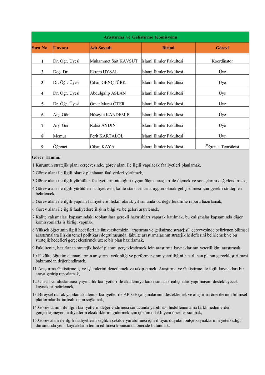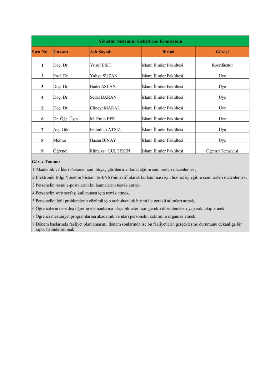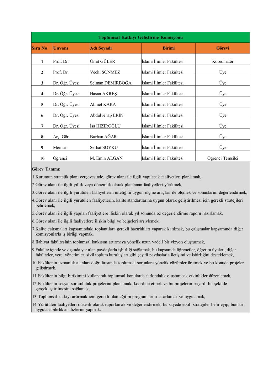 Komisyon, Kurul ve Koordinatörlükler Görev Dağılımı