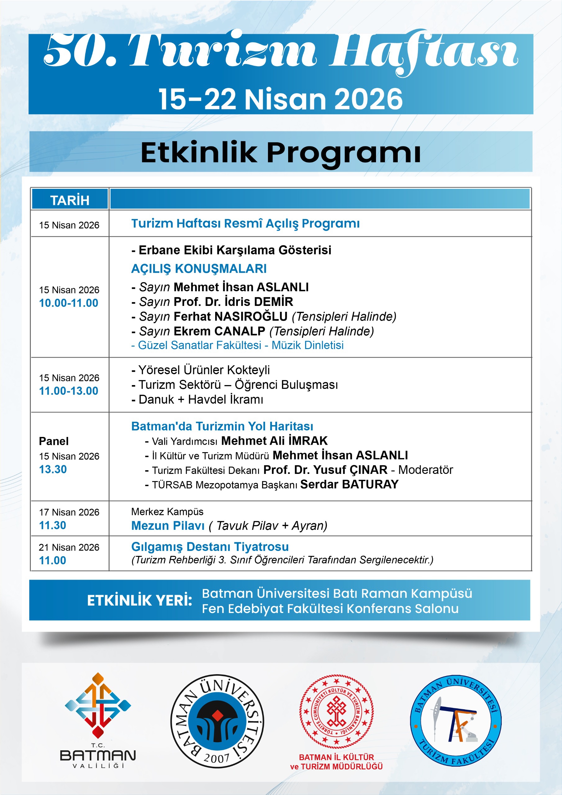 50. Turizm Haftası 15-22 Nisan 2026 Etkinlik Programı