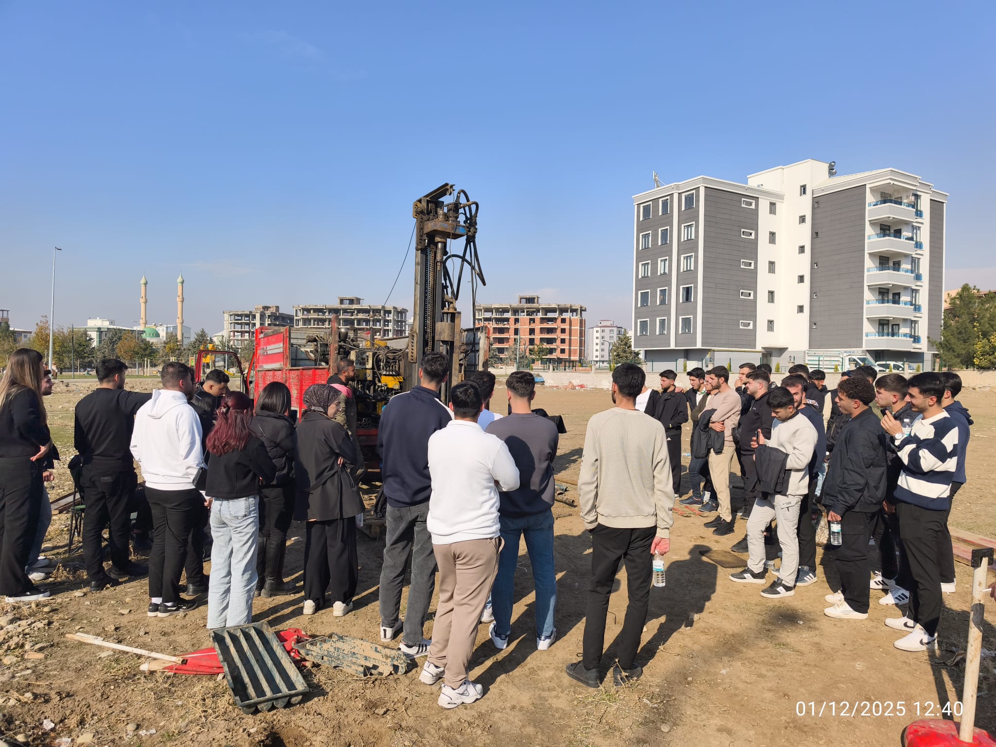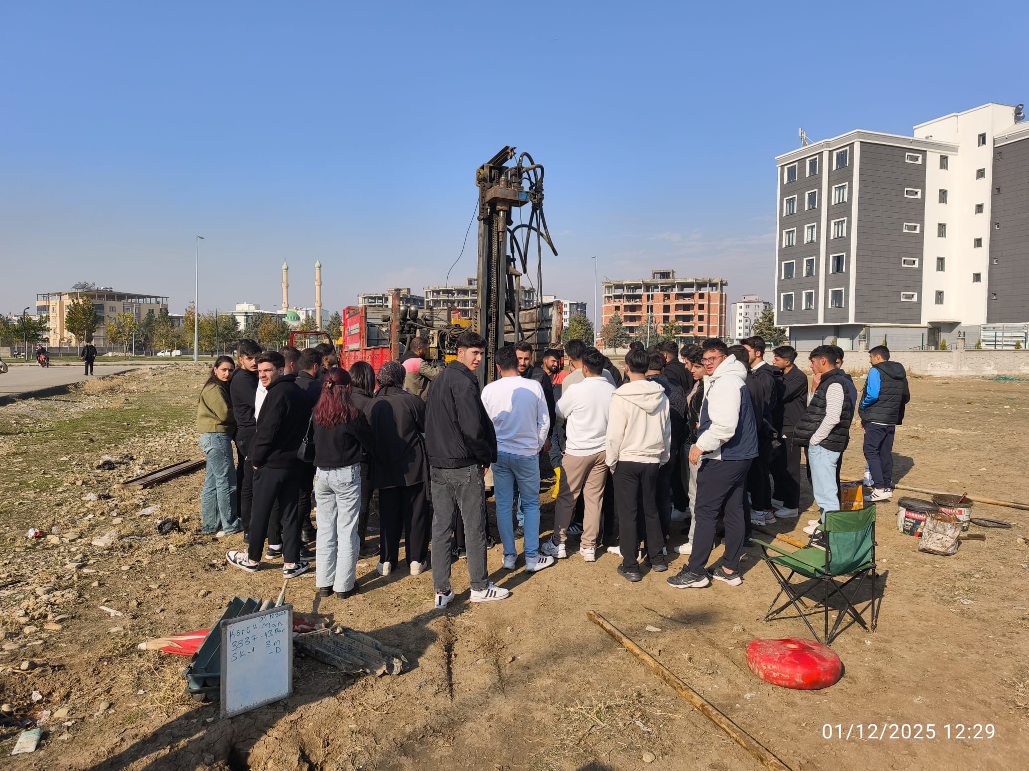 Üniversitemizin 2025-2026 Eğitim-Öğretim yılı Güz yarıyılı Teknik Bilimler Meslek Yüksekokul bünyesinde bulunan Sondaj Teknolojisi Programı 1. Ve 2. Sınıf öğrencilerine uygulama ders kapsamında 01.12.2025 tarihinde Batman ilinde Koç Mühendisliği tarafından gerçekleştirilen zemin etüdü ve SPT( Standart Penetrasyon Deneyi) çalışmalarına katılım sağlanmıştır.