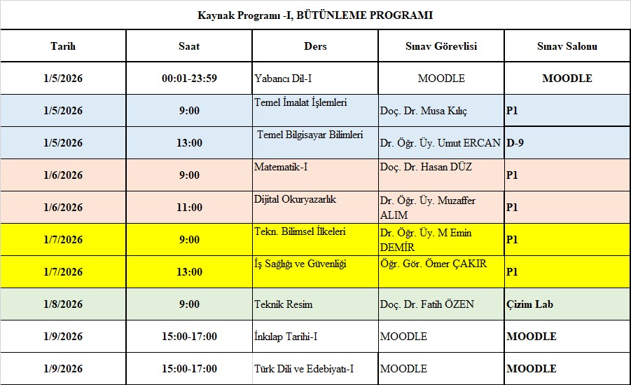 Kaynak I. Sınıf Büt Sınav Programı