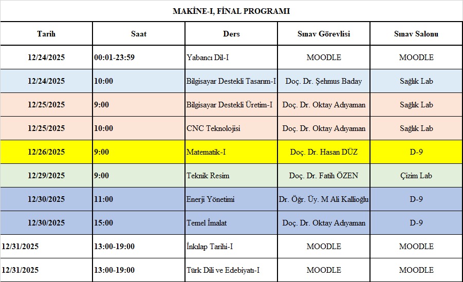 Maki̇ne ve Metal Teknoloji̇leri̇ Bölümü