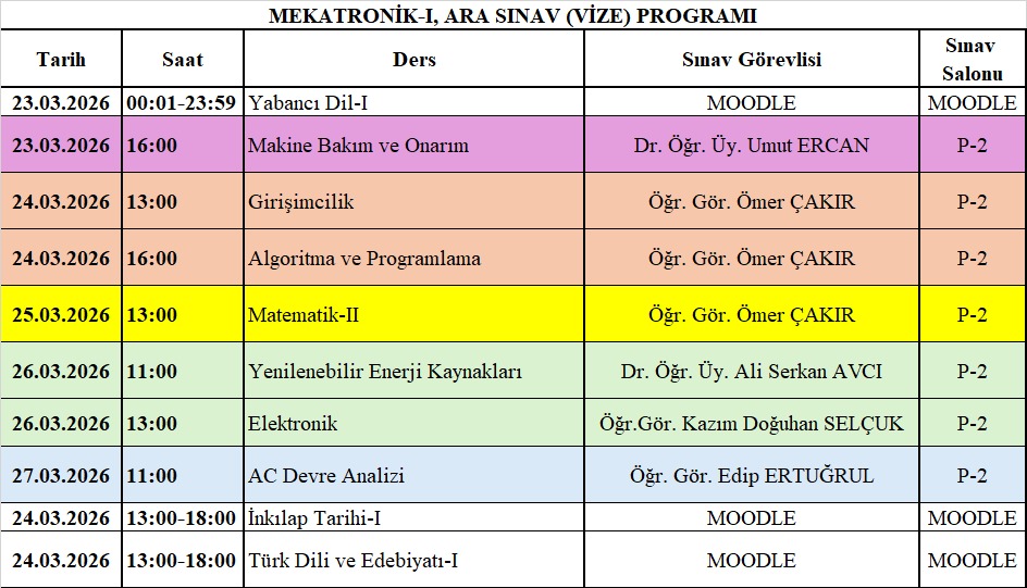 Mekatronik I - 1.vize programı