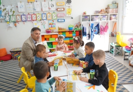 İlkokul ziyaretinin ardından anaokulu öğrencileriyle de bir araya gelen Rektör Prof. Dr. Demir, miniklere de “Çizgi Bilim Aziz Sancar” kitabını ve çeşitli hediyeler armağan ederek onlarla sohbet etti.
