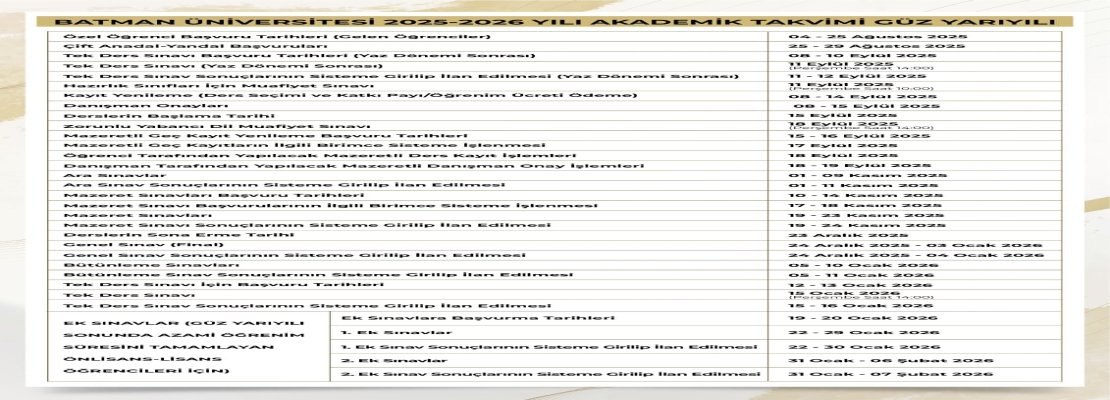 Üniversitemiz 2025-2026 Eğitim-Öğretim Yılı Akademik Takvimi Açıklandı...