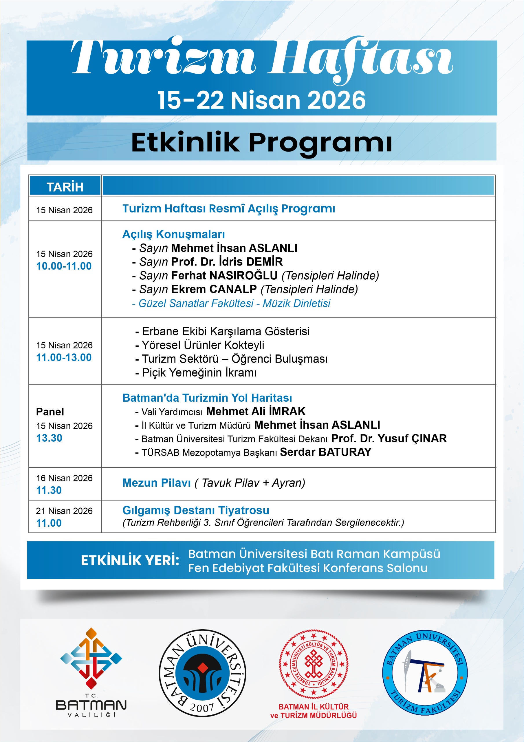 Turizm Haftası Etkinlik Programı