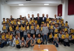 Program çerçevesinde öğrencilere, bilim insanı Aziz Sancar’ın hayatını ve başarılarını anlatan Çizgi Bilim Aziz Sancar kitabı hediye edildi. Nobel bilim ödülü sahibi Aziz Sancar’ın genç nesillere rol model olduğunu vurgulayan Rektör Prof. Dr. Demir, öğrencilere daima merak etmeyi, çalışmayı ve bilime yönelmeyi öğütledi. Programın devamında öğretmenler odasında okul öğretmenleriyle sohbet eden Rektör Prof. Dr. Demir, akademisyen-öğrenci buluşmalarının öneminde değindi.