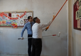 Rektör ve Üniversitemiz Öğrencileri El Ele Köy Okulu Boyadı