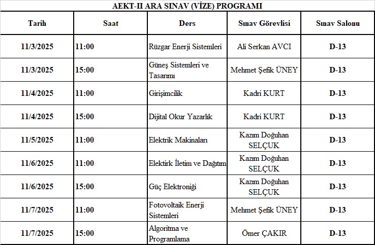 AEKT 2.Sınıf Vize programı