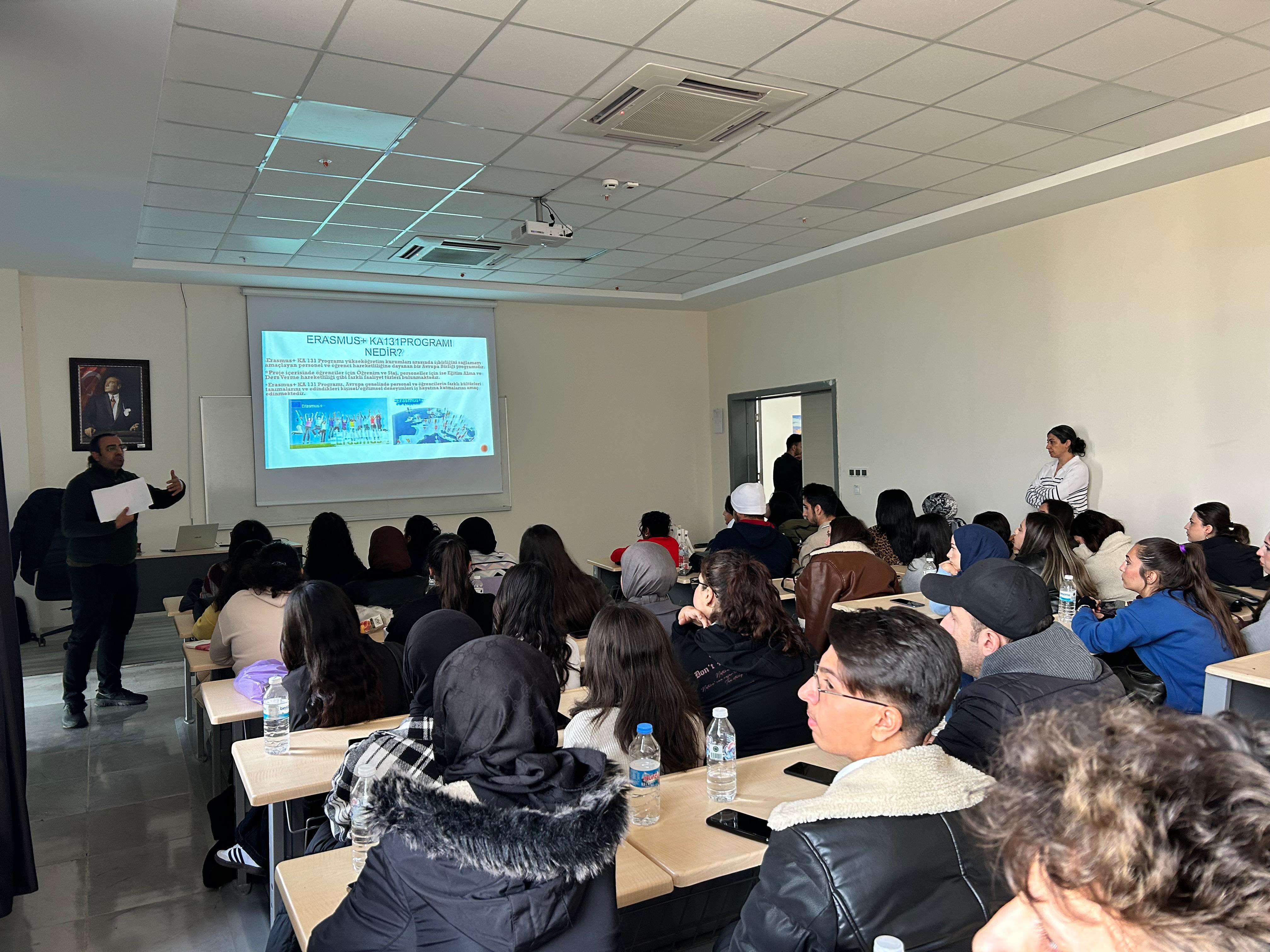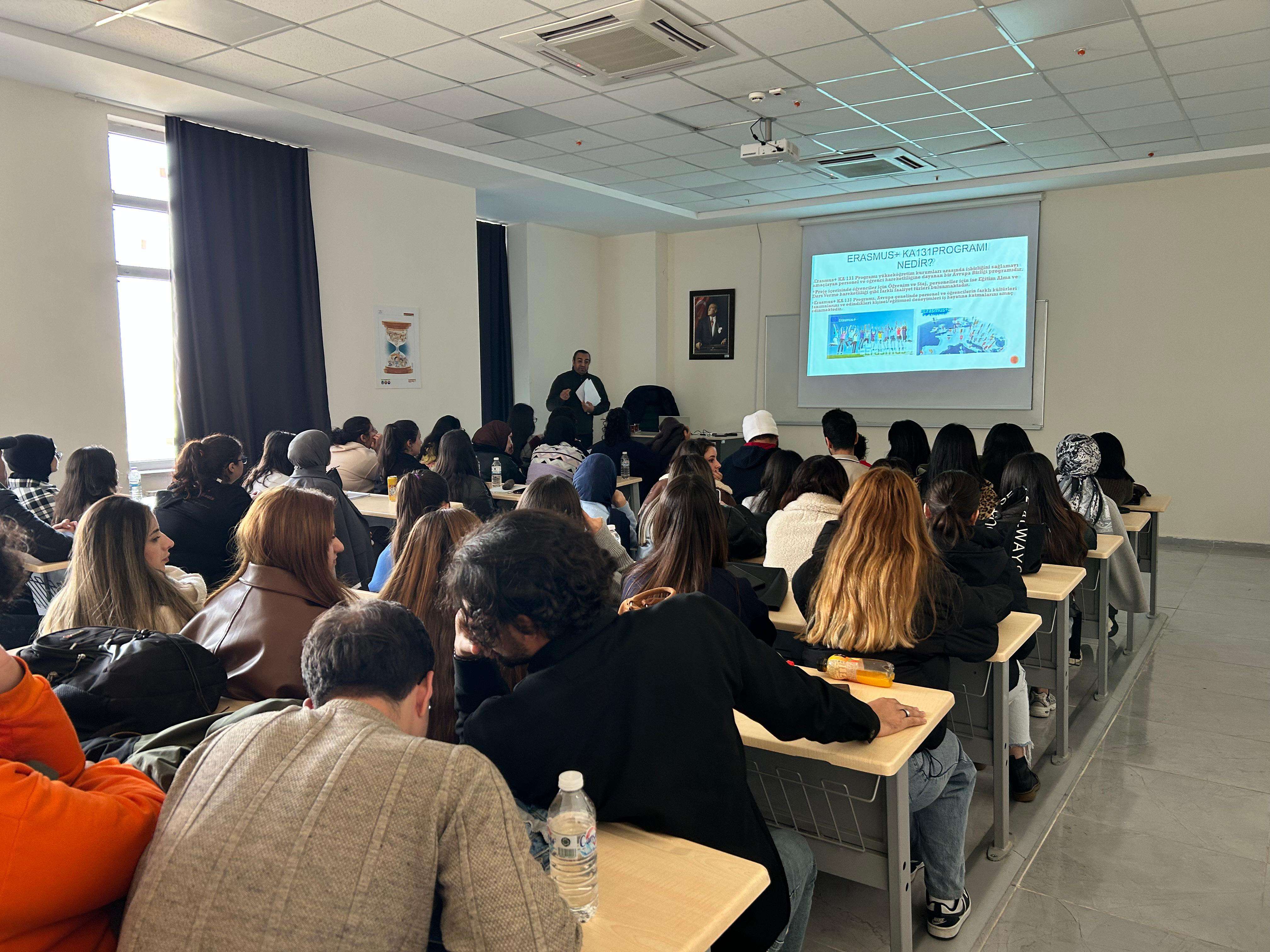 Üniversitemiz Erasmus+ Koordinatörlüğünce Turizm Fakültesinde Akademik ve İdari Personeli ile Öğrencilerine yönelik 19.11.2025 tarihi 13:00-15:00 saatleri arasında bilgilendirme toplantısı yapılmıştır. Toplantının ardından Akademik ve İdari Personeli ile Öğrencilerinin Erasmus+ ile ilgili sorularına gerekli cevaplar verilmiştir.
