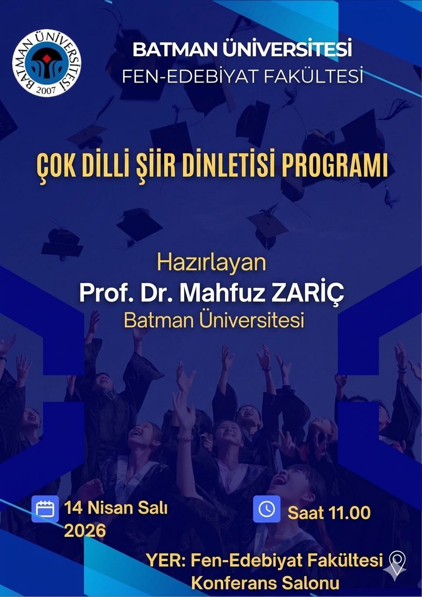 Fakültemiz Konferans Salonunda 14 Nisan 2026 tarihinde saat 11:00'de "Çok Dilli Şiir Dinletisi Programı" düzenlenecekir.