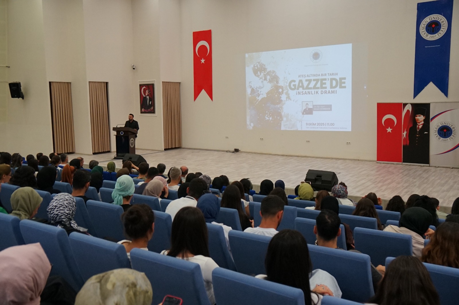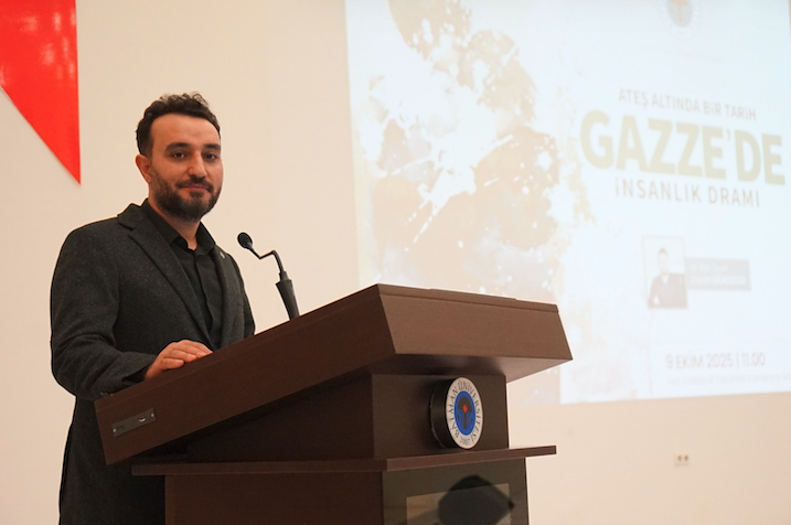 Üniversitemiz, günümüzün en büyük insani krizlerinden birine dikkat çekmek amacıyla anlamlı bir etkinliğe ev sahipliği yaptı. YÖK’ün üniversitelere bildirdiği “İlk Ders: Gazze” kapsamında Fen Edebiyat Fakültesi Konferans Salonu’nda gerçekleşen “Ateş Altında Bir Tarih: Gazze’de İnsanlık Dramı” başlıklı konferansta, Gazze’de yaşanan insani kriz ve soykırım tarihsel ve insani boyutlarıyla ele alındı. Dekan Yardımcımız Dr. Öğr. Üyesi Ercan Gördegir’in konuşmacı olduğu programa akademisyenler, öğrenciler ve çok sayıda davetli katıldı.