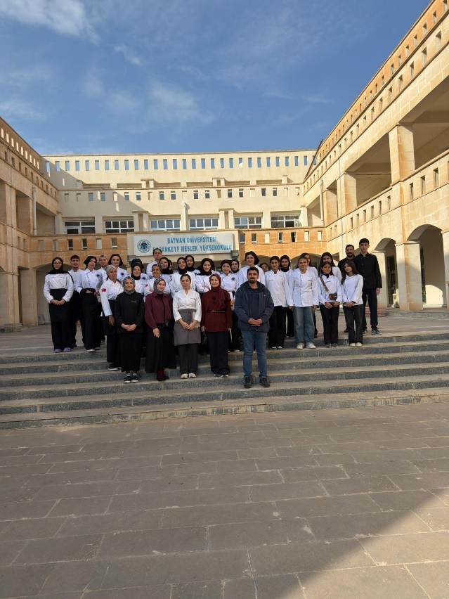 Beşiri Mesleki ve Teknik Anadolu Lisesi Yiyecek-İçecek Hizmetleri Bölümü öğrencileri, Hasankeyf Meslek Yüksekokulu Pastacılık ve Ekmekçilik Programı’nın uygulamalı eğitim ortamını tanımak amacıyla okulu ziyaret etti. Öğrenciler, Program’da görev yapan Öğr. Gör. Seren Kavas tarafından yürütülen “Temel Pasta ve Tatlı Yapım Teknikleri” dersine misafir olarak katıldı.