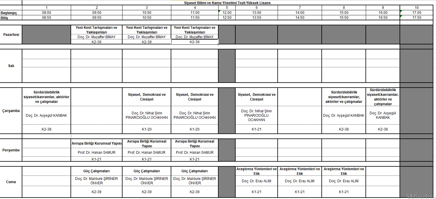 Siyaset Bilimi ve Kamu Yönetimi Tezli Yüksek Lisans Ders Programı
