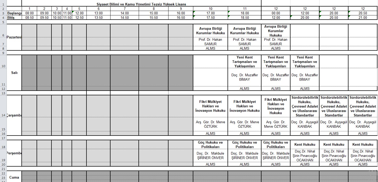 Siyaset Bilimi ve Kamu Yönetimi Tezsiz Yüksek Lisans Ders Programı