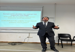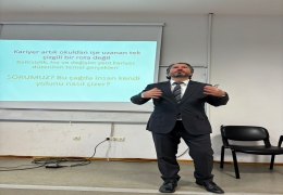 Fakültemiz Birim Mezun Komisyonu bünyesinde, İşletme Bölümü Öğretim Üyelerinden Doç. Dr. Osman YILMAZ tarafından "Kariyer 2.0. Belirsizlik Çağında Stratejik Kariyer Tasarımı" başlıklı bir konferans düzenlenmiştir.Konferansa öğrencilerimiz ve fakülte personelimiz katılmıştır.