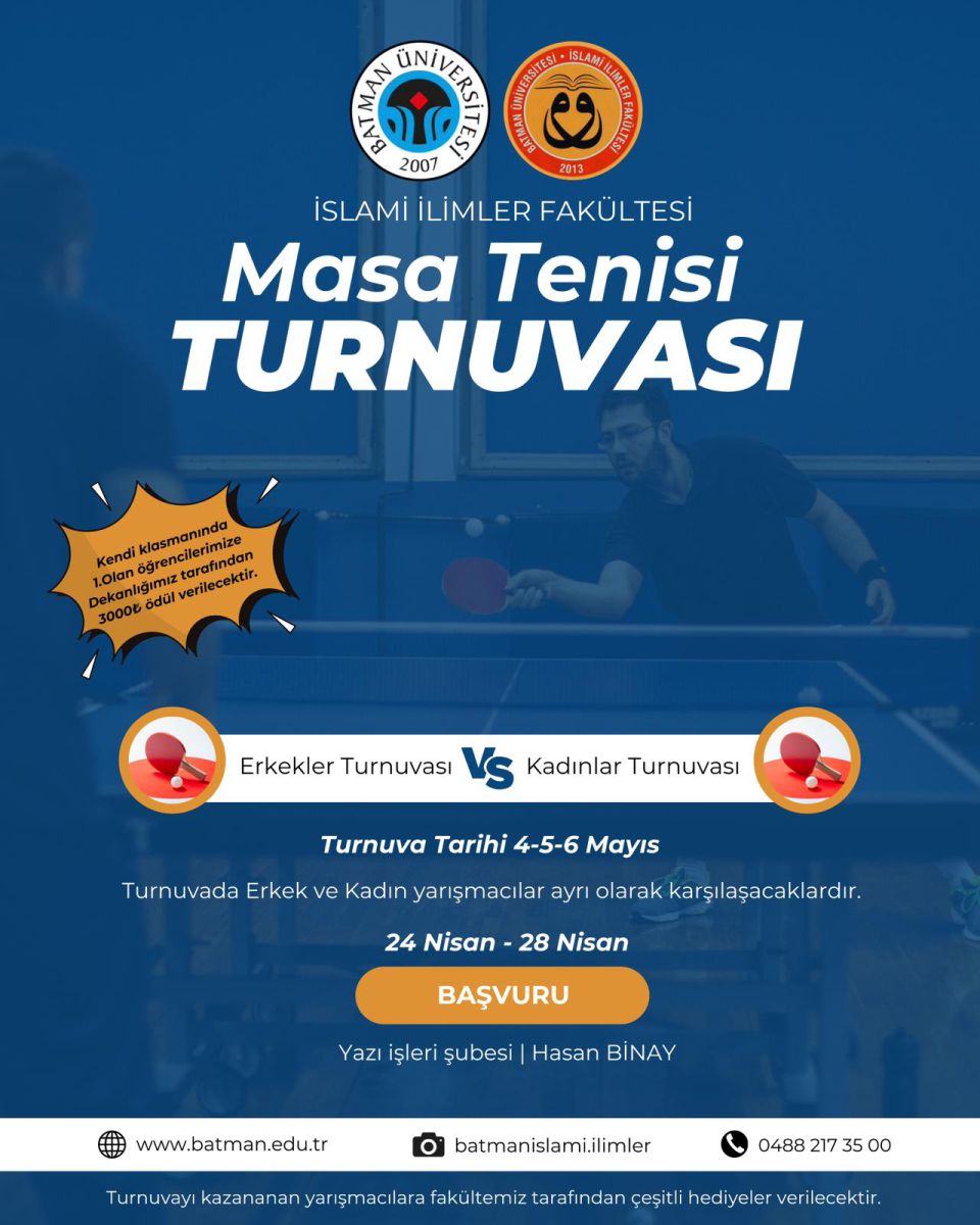 Turnuvaya katılmak isteyen öğrencilerimizin belirtilen tarihler arasında başvurularını yapmaları gerekmektedir. Turnuva, fair-play ruhu çerçevesinde gerçekleştirilecek olup dereceye giren katılımcılara çeşitli ödüller verilecektir.