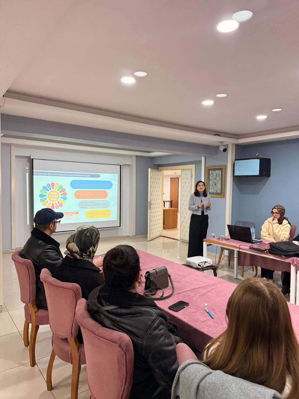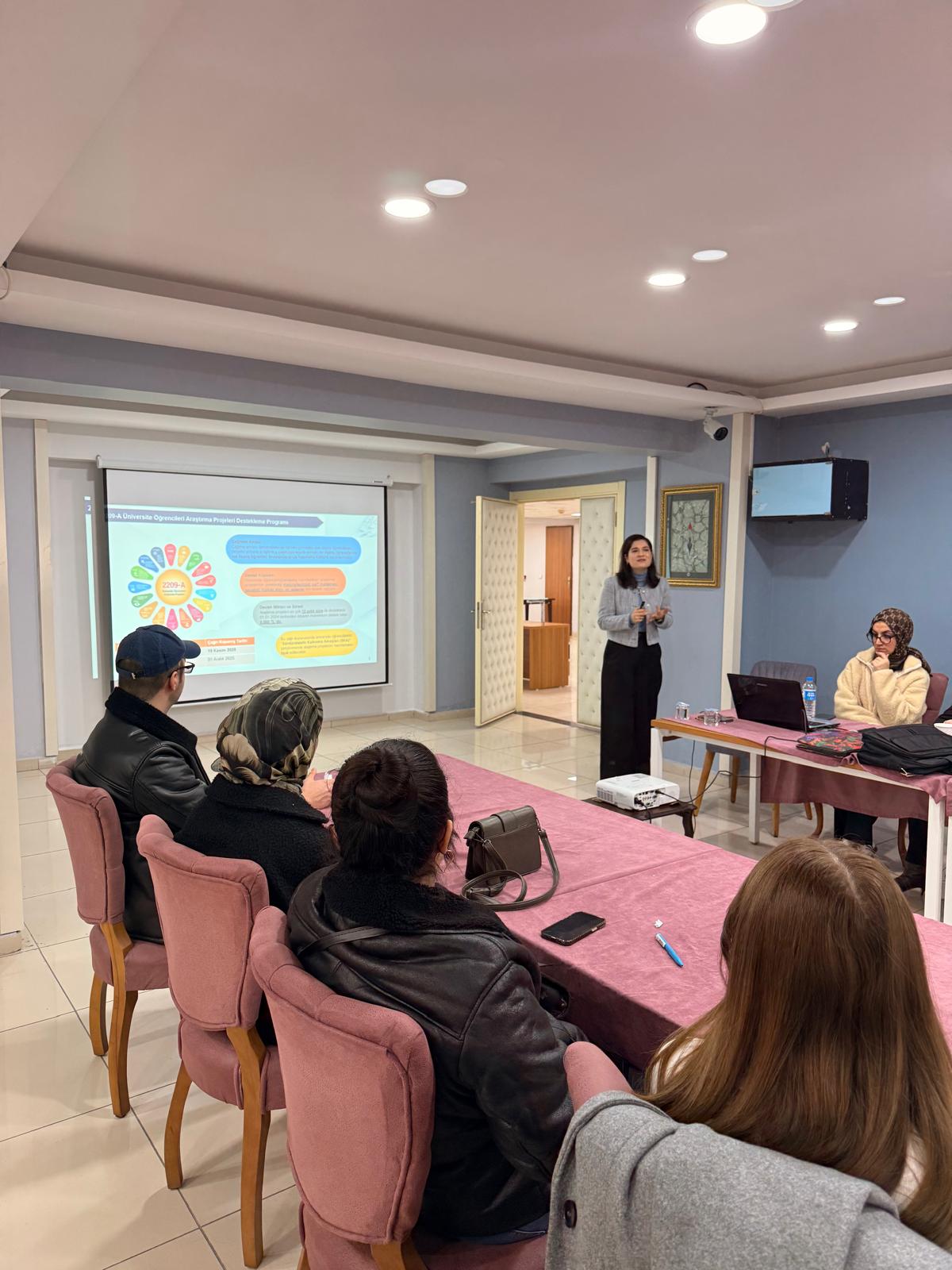 Üniversitemiz öğrenci topluluklarına yönelik proje yazma eğitimi kapsamında Birimimiz öğretim elemalarından Doç. Dr. Hazal Koray ALAY ÜNİDES (Üniversite Öğrenci Topluluları ve Destek Programı) projeleri hakkında bilgilendirme sunumu gerçekleştirilmiştir.