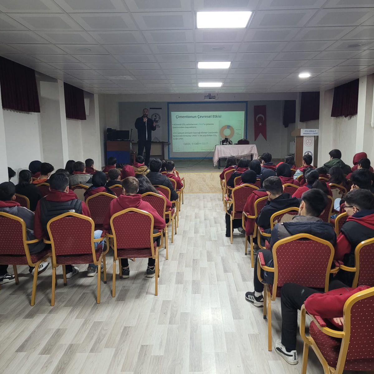 12 Aralık 2025 tarihinde Ziya Gökalp Anadolu Lisesi öğrencileri ile bir araya gelen Öğr. Gör. Mehmet Ali Erçetin “Daha Yaşanılabilir Bir Dünya İçin Çimentosuz Beton Mümkün mü?” adlı sunumu gerçekleştirdi.