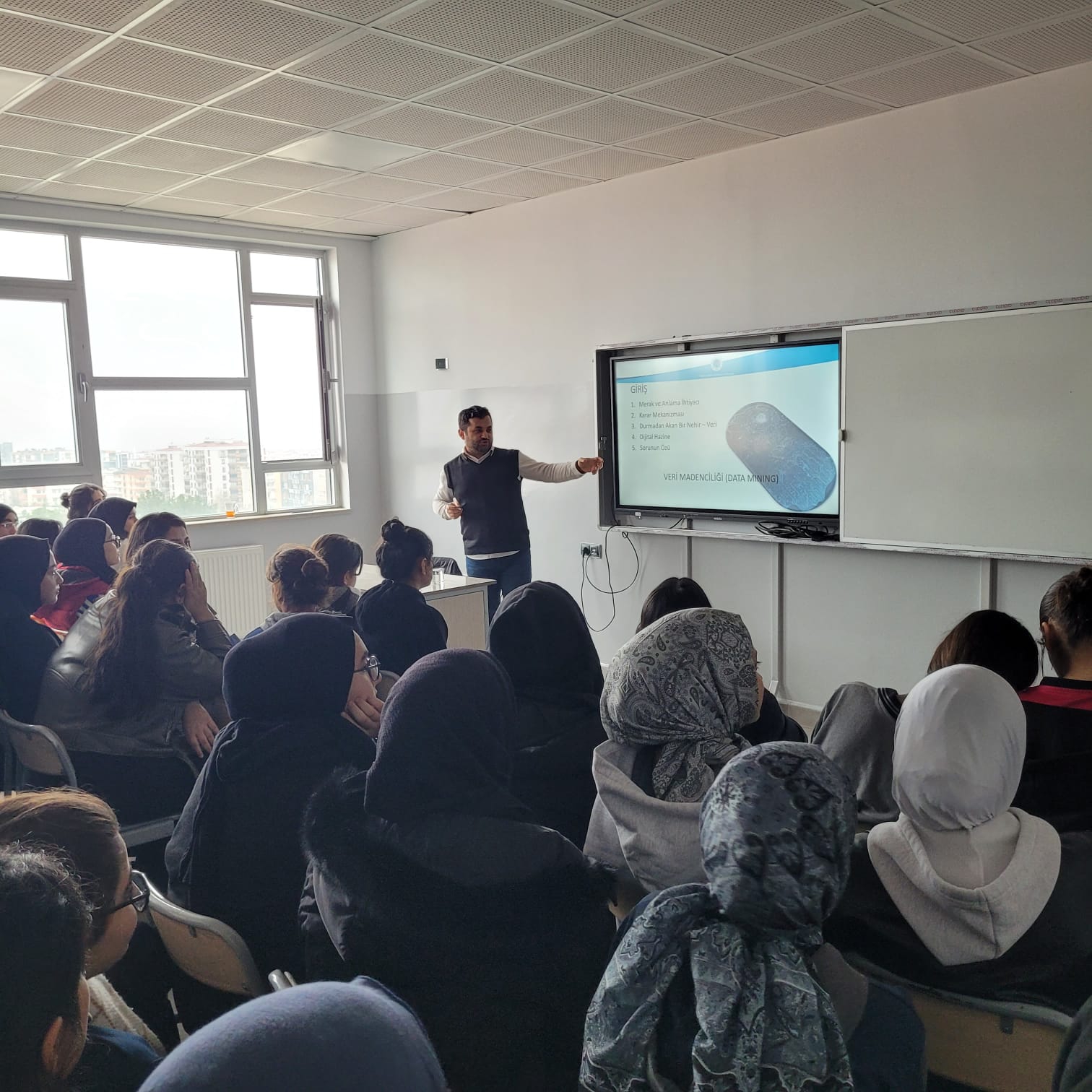 10 Aralık 2025 tarihinde gerçekleşen haftanın ilk buluşmasında Dr. Öğr. Üyesi Muzaffer Alım “Büyük Veri ve Bulut Bilişim” konulu konferansı ile Akşemseddin Kız Anadolu İmam Hatip Lisesi öğrencileri ile bir araya geldi.