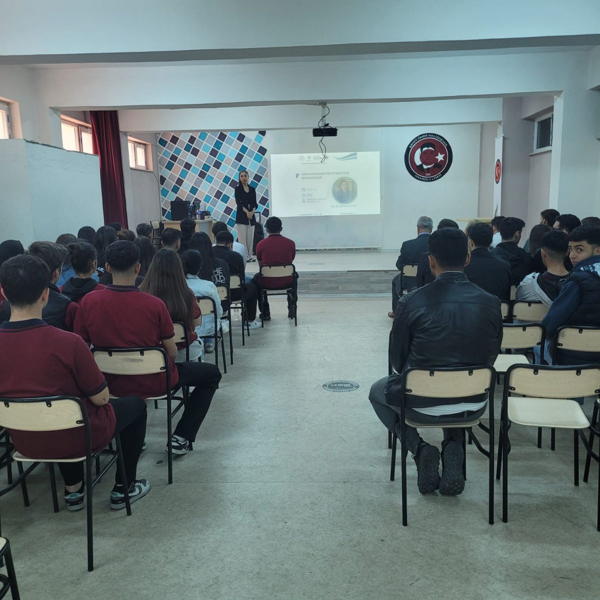 Haftanın son buluşmasında 24 Ekim 2025 tarihinde Doç. Dr. Seray Gülertekin Genç “Etkili İletişim Becerileri ve Beden Dili” konulu sunumu ile Prof. Dr. Fuat Sezgin Anadolu Lisesi öğrencileri ile bir araya geldi.