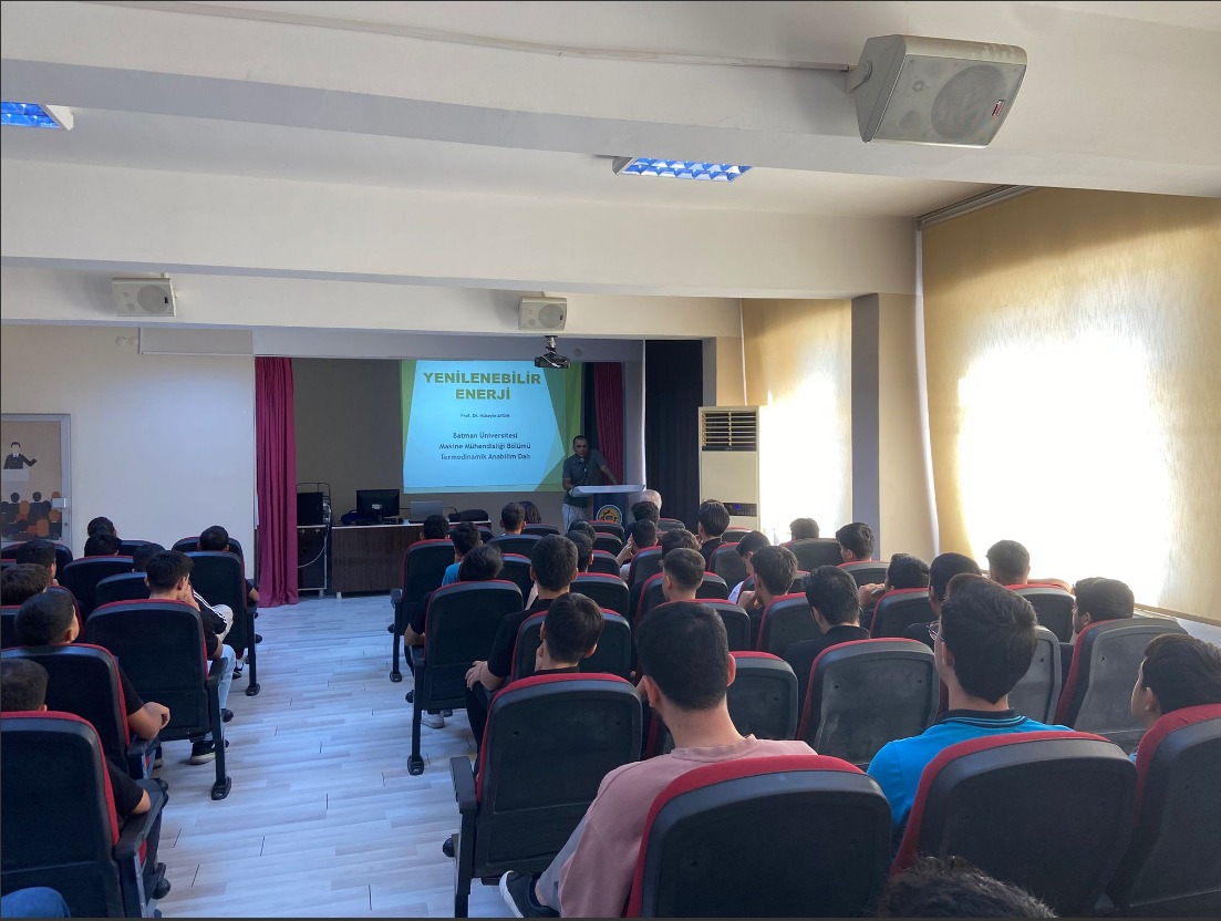 Haftanın son buluşmasında 3 Ekim 2025 tarihinde Prof. Dr. Hüseyin Aydın “Yenilenebilir Enerji” konulu sunumu ile Batman Mesleki ve Teknik Anadolu Lisesi öğrencileri ile bir araya geldi.