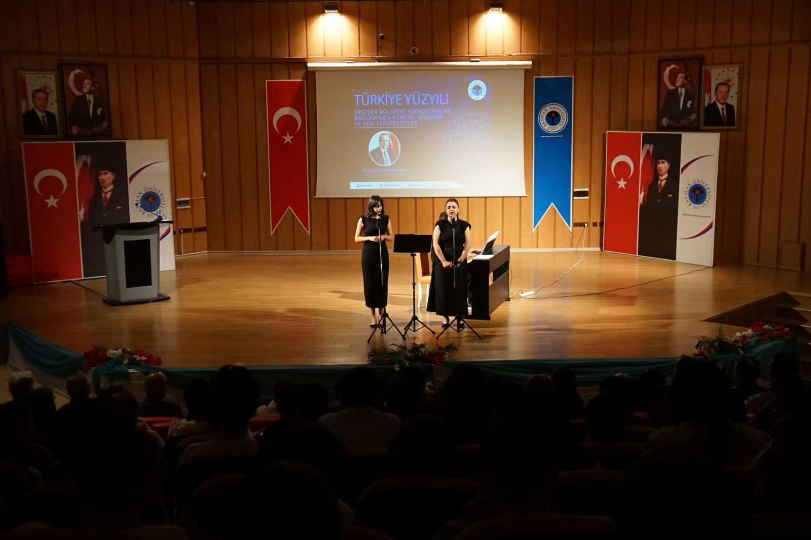 Üniversitemiz, “Türkiye Yüzyılı: Değişen Bölgesel Paradigmalar Bağlamında Küresel İlişkiler ve Yeni Perspektifler” başlıklı konferansa ev sahipliği yaptı. Merkez Kampüs Konferans Salonunda düzenlenen Avrupa Birliği Eski Bakanı ve Başmüzakereci Büyükelçi Dr. Egemen Bağış’ın konuşmacı olarak katıldığı etkinlikte, Türkiye’nin bölgesel ve küresel ilişkilerdeki rolü ile dış politikada yeni yönelimler ele alındı. Programa Batman Valisi Ekrem Canalp’in eşi Dr. Ayten Canalp, Üniversitemiz Rektörü Prof. Dr. İdris Demir ve eşi Zeynep Demir, rektör yardımcıları, akademisyenler, idari personel, öğrenciler ve davetliler katıldı. Saygı duruşu ve İstiklal Marşı ile başlayan program, Üniversitemiz Güzel Sanatlar Fakültesi Müzik Bölümü öğrencilerinin piyano eşliğinde sunduğu şan resitaliyle devam etti.