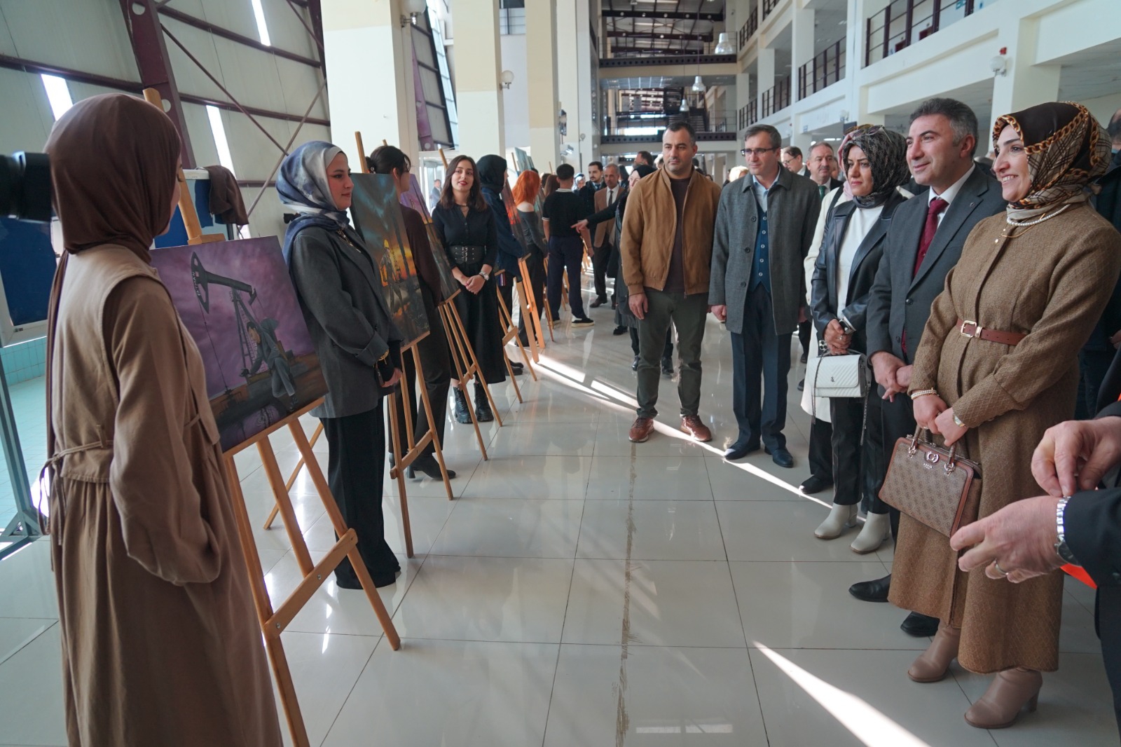 Sergilerin ardından program, Üniversitemiz Basın ve Halkla İlişkiler Koordinatörlüğü tarafından hazırlanan “Petrolün Öyküsü” adlı videonun izlenmesiyle devam etti. Açılış konuşmasını yapan Batman Üniversitesi Rektörü Prof. Dr. İdris Demir, petrolün Batman için yalnızca bir enerji kaynağı değil; bir şehrin kaderini belirleyen tarihsel, toplumsal ve kültürel bir değer olduğunu vurguladı. Cumhuriyet’in Anadolu’ya uzanan kalkınma idealinin en somut örneklerinden birinin Batman olduğunu ifade eden Demir, 1930’lu yıllarda başlayan petrol arama çalışmalarının 1946’da ticari üretime dönüşmesiyle birlikte Batman’ın emeğin, alın terinin ve umudun şehri hâline geldiğini belirtti.