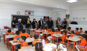 Batman Valisi Ekrem Canalp’in eşi Dr. Ayten Canalp ve Üniversitemiz Rektörü Prof. Dr. İdris Demir, TOKİ Kazım Karabekir İlkokulunu ziyaret ederek öğrencilerle bir araya geldi. Batman Valiliği, Üniversitemiz ve Batman İl Milli Eğitim Müdürlüğü tarafından yürütülen “Akademisyen–Öğrenci Buluşmaları” projesi kapsamında gerçekleşen ziyarette ilkokul öğrencileriyle buluşan Dr. Ayten Canalp ve Rektör Prof. Dr. İdris Demir minik öğrencilerle sohbet ederek öğrencilerin kendilerini ifade etmesinden duydukları memnuniyeti dile getirdiler. Öğrencilerin okuma alışkanlıklarını henüz ilk okuma sırasında kazandırılmasının önemine değinen Rektör Prof. Dr. Demir, öğrencilere Çizgi Bilim Aziz Sancar kitabı hediye etti. İlkokula gerçekleşen ziyaret, hatıra fotoğrafı çekiminin ardından sona erdi.