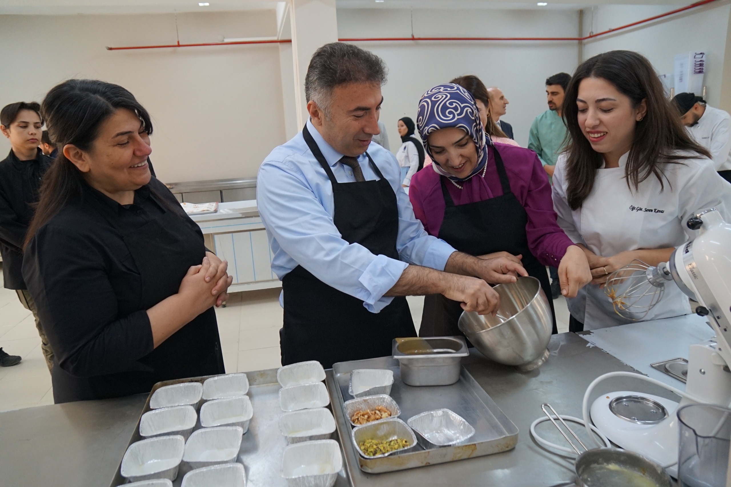 Hasankeyf Meslek Yüksekokulu Otel, Lokanta ve İkram Hizmetleri Bölümü Pastacılık ve Ekmekçilik Programı’nın yeni mutfağı törenle açıldı. Açılışa Batman Valisi Ekrem Canalp’in eşi Dr. Ayten Canalp, Üniversitemiz Rektörü Prof. Dr. İdris Demir ve eşi Zeynep Demir, Hasankeyf Kaymakamı Mehmet Ali İmrak’ın eşi Sezen İmrak, Turizm Fakültesi ile Hasankeyf Meslek Yüksekokulu öğretim elemanları ve öğrenciler katıldı. Açılış kapsamında Dr. Ayten Canalp ve Sezen İmrak, Rektör Prof. Dr. İdris Demir ve eşi Zeynep Demir, Pastacılık ve Ekmekçilik Programı öğretim elemanlarıyla birlikte yeni mutfağın donanımını inceleyerek eğitim ortamına ilişkin bilgiler aldı, ekmek ve sufle yaparak uygulamalı çalışmalara da eşlik etti. Programda, öğrencilerin yeni eğitim-öğretim döneminde uygulamalı derslerini bu modern mutfakta gerçekleştirecekleri ifade edildi. Donanımı güçlendirilen mutfağın, pastacılık ve ekmekçilik alanında nitelikli mesleki eğitim sunmayı hedeflediği belirtildi.