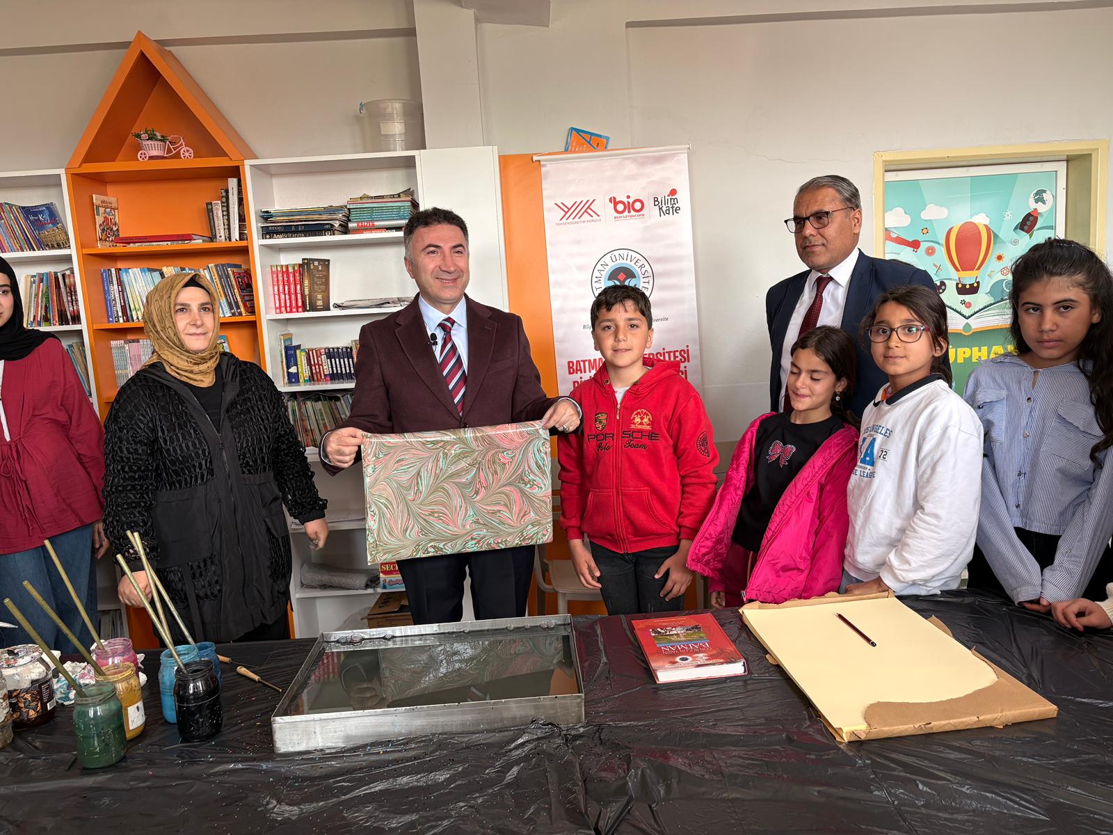 Üniversitemiz Bilim İletişimi Ofisi tarafından düzenlenen Bilim Kafe etkinlikleri ve Akademisyen-Öğrenci Buluşmaları kapsamında "Üniversite-Köy Buluşmaları" projesi çerçevesinde ilimiz Kozluk ilçesi Kavakdibi İlk ve Ortaokulunda gerçekleştirilen “Ebru Atölyesi” etkinliği, üniversite ve köy okulu öğrencilerini bir araya getirdi.