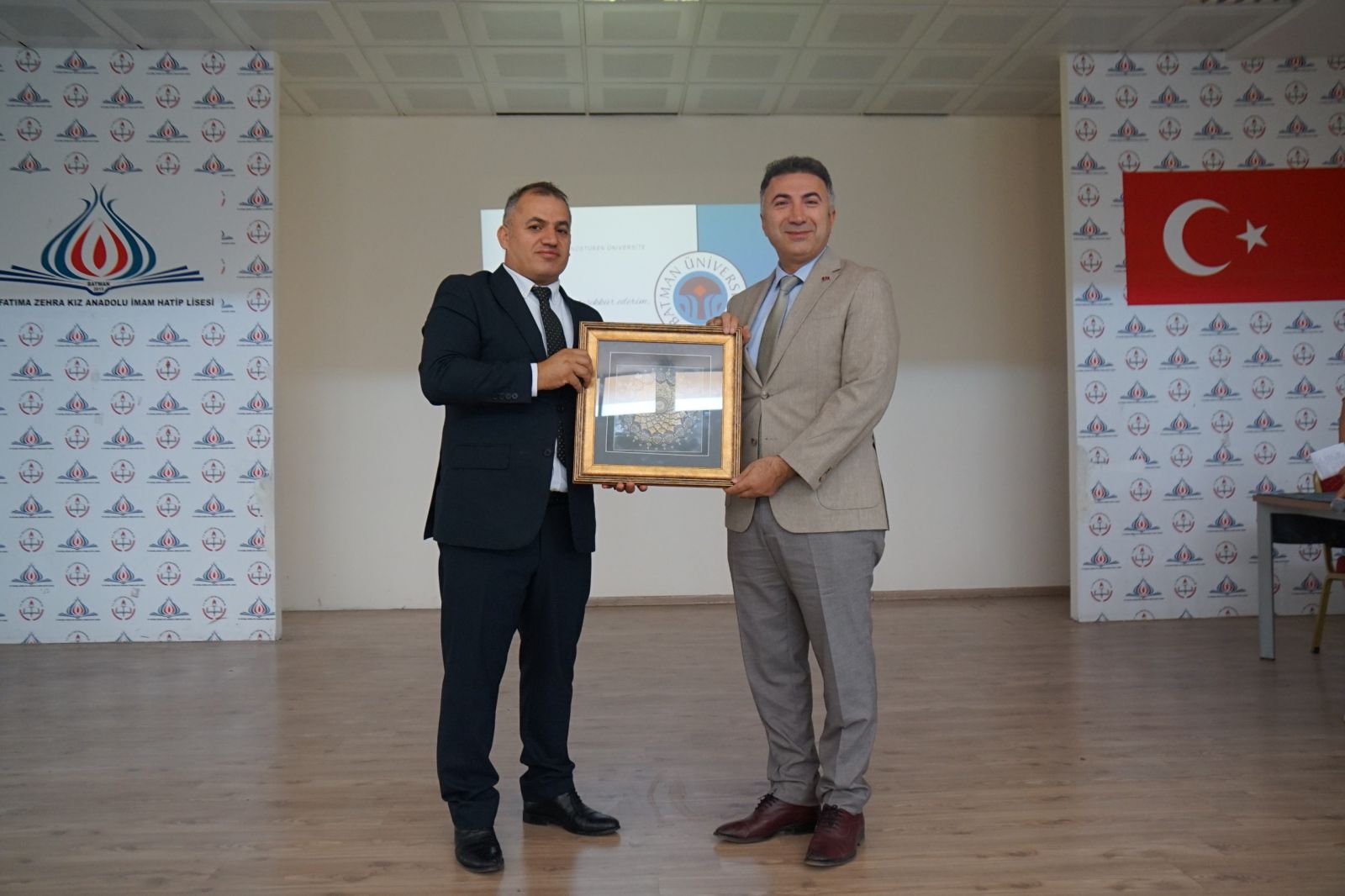 TP Fatıma Zehra Kız Anadolu İmam Hatip Lisesi Müdürü İrfan Ortaç’ın Rektör Prof. Dr. Demir’e hediye takdiminde bulunmasının ardından; program öğrenciler, akademisyenler, öğretmenler ve okul yöneticileri ile günün anısına çekilen hatıra fotoğrafı ile son buldu.