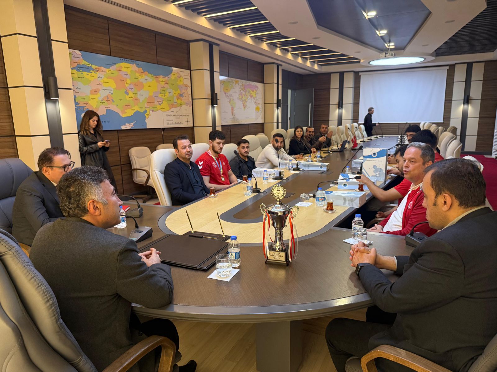 Burdur Mehmet Akif Ersoy Üniversitesi ev sahipliğinde geçtiğimiz günlerde düzenlenen Üniversiteler Arası Grekoromen Güreş Türkiye Şampiyonası’nın tamamlanmasının ardından Üniversitemizdeki sıralarına dönen başarılı öğrenciler, Rektörümüz Prof. Dr. İdris Demir tarafından Batı Raman Kampüsü Rektörlük Binası Senato Salonu’nda kabul edildi. Ziyarette Rektör Yardımcıları Prof. Dr. Yusuf Çınar ve Prof. Dr. Ömer Faruk Ertuğrul, Spor Bilimleri Fakültesi Dekanı Prof. Dr. Hasan Dalman ve öğretim üyeleri de hazır bulundu. Şampiyon sporcular, kazandıkları Türkiye şampiyonluğu kupasını Rektörümüz Prof. Dr. Demir’e takdim etti. Rektörümüz Prof. Dr. İdris Demir, öğrencilerin elde ettiği başarıların gurur verici olduğunu vurgulayarak spora olan desteklerinin süreceğini ifade etti. Rektör Prof. Dr. Demir, genç yetenekleri çalıştıran ve finale hazırlayan öğretim üyelerini tebrik ederek dereceye giren öğrencilere çeşitli hediyeler verdi. Türkiye Üniversite Sporları Federasyonu faaliyet programı kapsamında, Burdur Mehmet Akif Ersoy Üniversitesi ev sahipliğinde geçtiğimiz günlerde düzenlenen Üniversiteler Arası Grekoromen Güreş Türkiye Şampiyonası’nda Batman Üniversitesi önemli bir başarıya imza atarak 64 üniversitenin katıldığı şampiyonada Batman Üniversitesi, takım halinde Türkiye ikincisi olarak büyük bir başarı elde etmiş ve bu sonuçla A klasmanına yükselmeye hak kazanmıştı. Yine Şampiyonada Spor Bilimleri Fakültesi öğrencilerinden 67 kiloda Hacı Ahmet Altan Türkiye ikincisi, 82 kiloda Kadir Güzel Türkiye üçüncüsü, 97 kiloda Ahmet Furkan Öztürk Türkiye şampiyonu, 130 kiloda Ramazan Çınar ise Türkiye üçüncüsü oldu. Elde edilen bu başarılarla gelecek yıl düzenlenecek Üniversiteler Türkiye Şampiyonası’nda Batman Üniversitesinin A klasmanında mücadele etme hakkı kazandığı bildirildi.