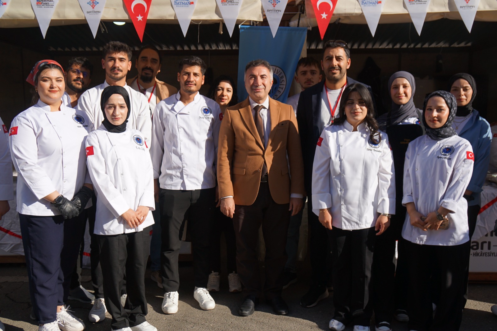 Batman Valisi Ekrem Canalp ve il protokolü tarafından gerçekleştirilen festivalin açılışına katılan Rektör Prof. Dr. İdris Demir, Üniversite standını ziyaret ederek öğrencilerin hazırladığı yöresel yemekler şambörek ve sumak şerbetini ziyaretçilere ikram etti. Batman Valisi Ekrem Canalp de Üniversite standını ziyaret ederek öğrencilerden bilgi aldı ve sergilenen lezzetleri tattı. Rektör Prof. Dr. Demir, öğrencilerin gastronomi alanındaki başarılarından ve Batman mutfağını tanıtmadaki gayretlerinden dolayı memnuniyetini dile getirdi. Festival alanındaki ziyaretlerin ardından, ünlü Şef Eyüp Kemal Sevinç tarafından gerçekleştirilen workshop etkinliğinde yer alan Üniversitemiz Gastronomi Bölümü öğrencileri geleceğin şefleri olarak Vali Ekrem Canalp ve eşi Dr. Ayten Canalp, Rektör Prof. Dr. Demir ve il protokolünün katıldığı workshopta yeteneklerini sergiledi.