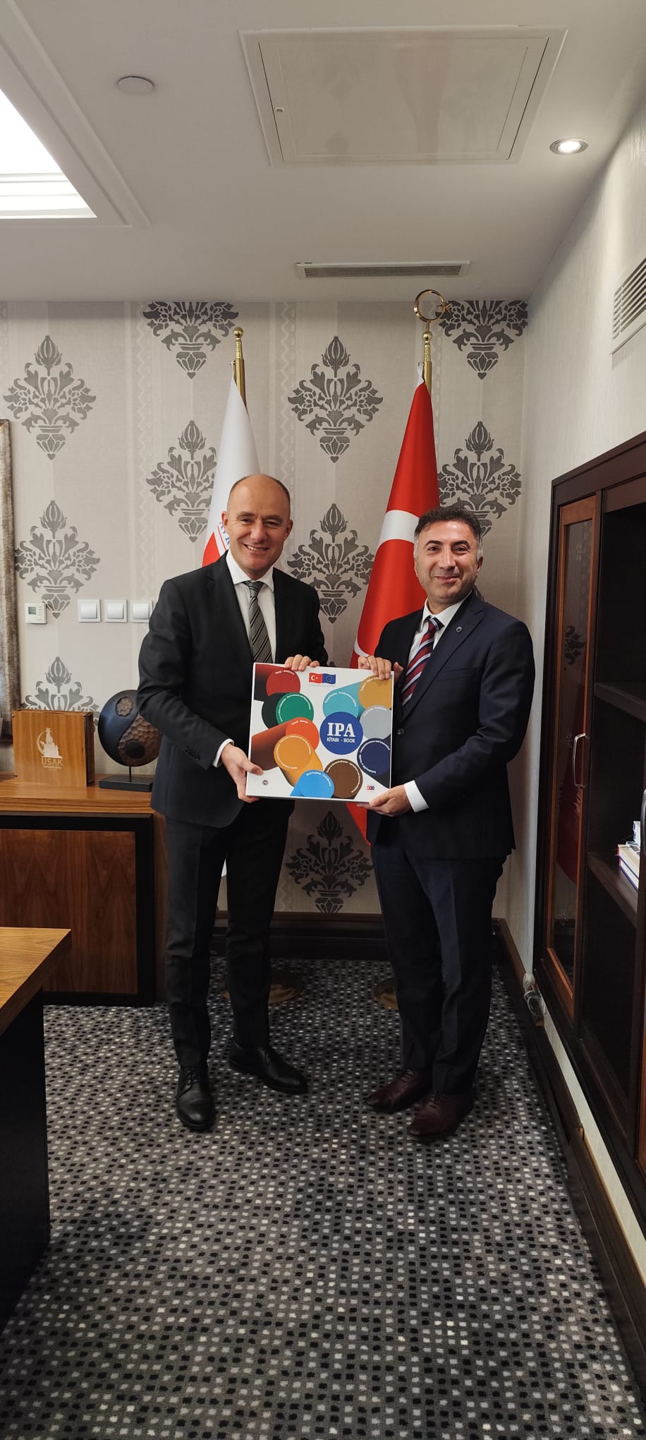 Üniversitemiz Rektörü Prof. Dr. İdris Demir, T.C. Dışişleri Bakanlığı Avrupa Birliği Başkanlığı Mali İşbirliği ve Proje Uygulama Genel Müdürü Bülent Özcan’ı makamında ziyaret etti. Genel Müdür Bülent Özcan’ın Ankara’daki makamında gerçekleşen ziyarette Üniversitemizde yürütülen akademik faaliyetler, devam eden projeler ve yapılması planlanan Avrupa Birliği projeleri ele alınarak karşılıklı fikir alışverişinde bulunuldu. Görüşmenin sonunda Rektör Prof. Dr. Demir, Genel Müdür Bülent Özcan’a plaket takdim etti. Ziyaret, hatıra fotoğrafı çekiminin ardından sona erdi.