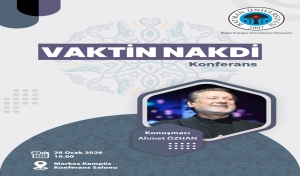 Üniversitemiz 28 Ocak 2026 tarihinde saat 10.00’da Merkez Kampüs Konferans Salonunda önemli bir etkinliğe ev sahipliği yapacak. Ünlü sanatçı ve tasavvuf yorumcusu Ahmet Özhan’ın konuşmacı olarak katılacağı “Vaktin Nakdi” başlıklı konferansta maneviyat, temel değerler ve tasavvufî öğretiler ele alınacak.