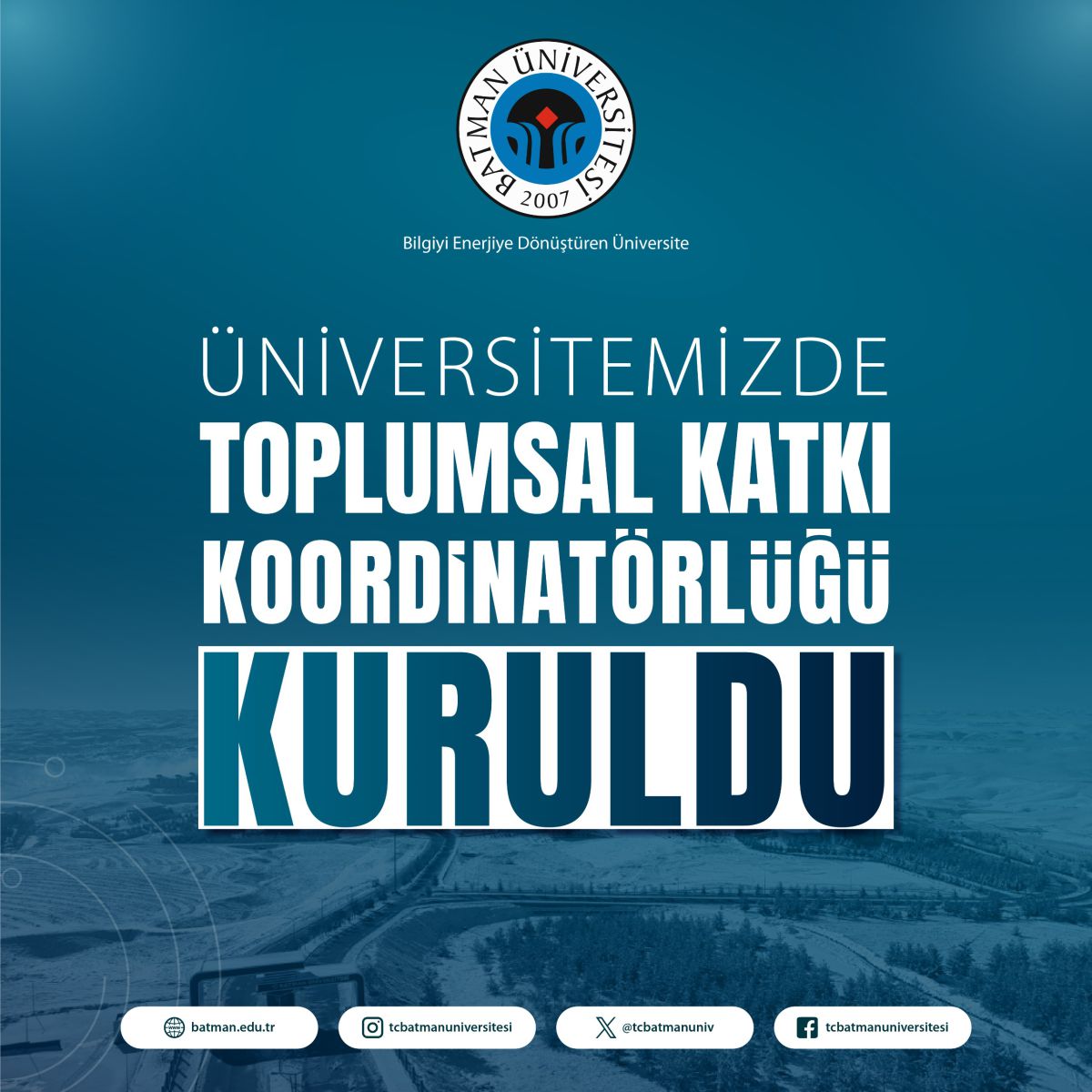 Üniversitemiz, kurumsal gelişim ve kalite odaklı yönetim anlayışı çerçevesinde yaptığı çalışmalarını güçlendirmeye devam ediyor. Üniversitemizde Kurumsal Akreditasyon Programı (KAP) ve kurumsal dönüşüm süreci kapsamında akademik ve toplumsal faaliyetlerin daha etkin bir şekilde yürütülmesini sağlamak amacıyla “Araştırma Geliştirme Koordinatörlüğü” ve “Toplumsal Katkı Koordinatörlüğü” adı altında iki yeni koordinatörlük kuruldu.