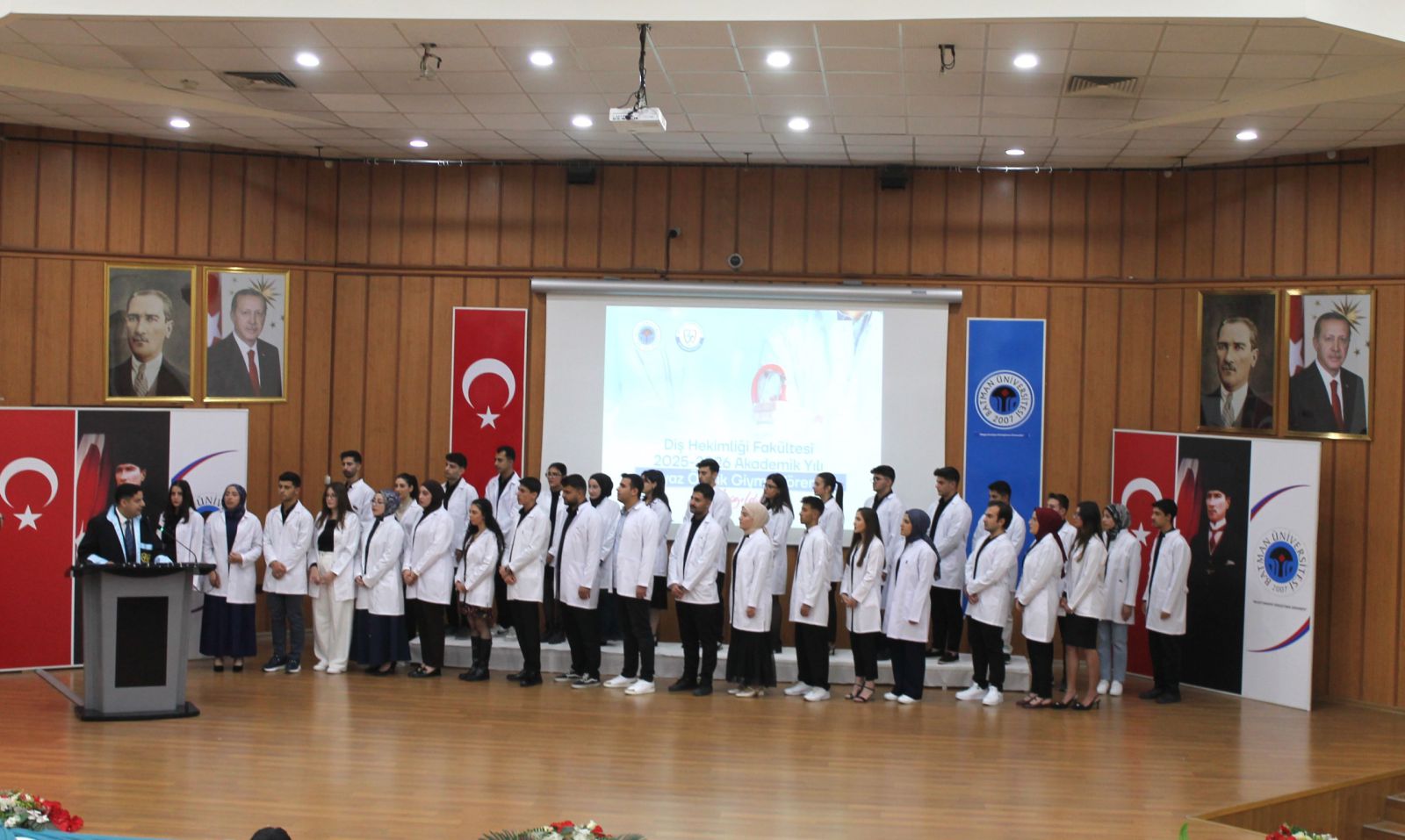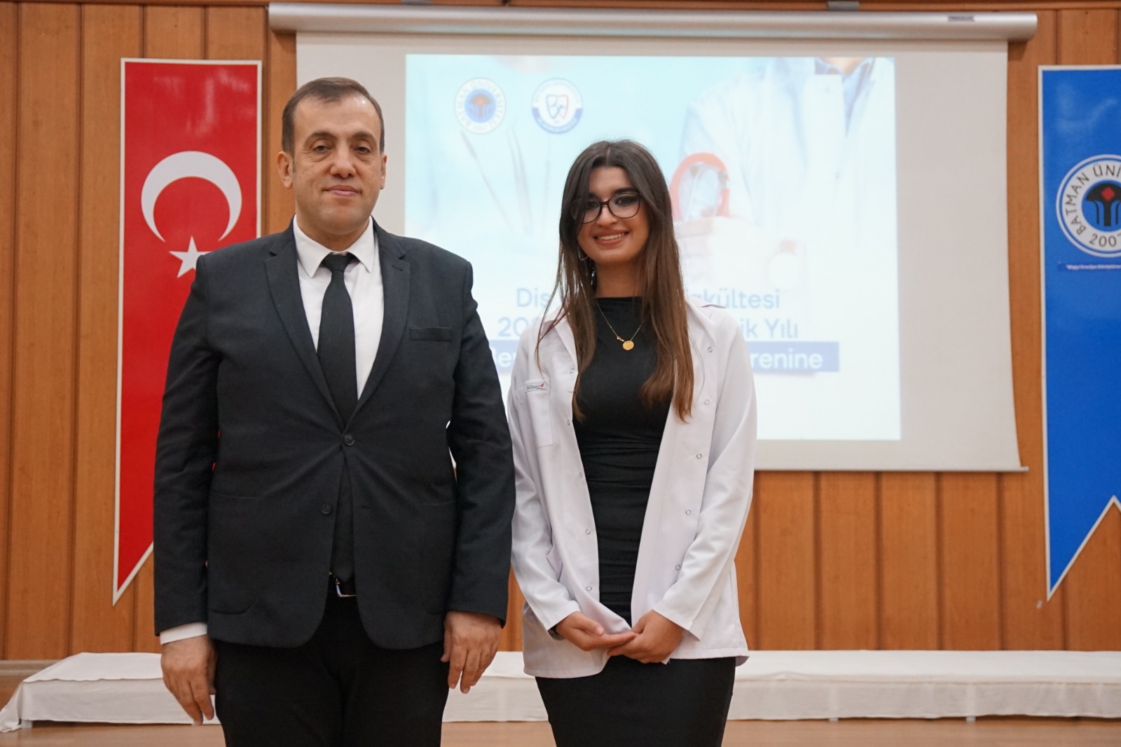 Üniversitemizde, 22 Kasım Dünya Diş Hekimleri Günü kapsamında Diş Hekimliği Fakültesi öğrencileri mesleki yolculuklarına ilk adımlarını attı. 34 öğrenci Beyaz önlük giyme töreni ile mesleğe ilk adımı atmanın heyecanını yaşadı. Törene, Üniversitemiz Rektör Yardımcısı Prof. Dr. Ömer Faruk Ertuğrul, İl Sağlık Müdürü Murat Solmaz, İl Sağlık Müdürlüğü Daire Başkan Yardımcısı İbrahim Kara, Araştırma Hastanesi Başhekimi Feyat Tunç, Ağız ve Diş Sağlığı Hastanesi Başhekimi Masum Ekinci, Ağız ve Diş Sağlığı Hastanesi Başhekim Yardımcısı Cihan Yanık, Türk Diş Hekimleri Birliği Batman Temsilcisi Yekta Ekmen, Üniversitemiz öğretim üyeleri, öğrenciler ve öğrenci aileleri katıldı. Açılış konuşmalarını Üniversitemiz Rektör Yardımcısı Prof. Dr. Ömer Faruk Ertuğrul, İl Sağlık Müdürü Murat Solmaz ve Fakülte Dekan Yardımcısı Doç. Dr. Veysel Eratilla’nın gerçekleştirdiği etkinlikte, beyaz önlüğün mesleğin saflığını, etik değerlerini ve toplum sağlığına adanmışlığı simgelediği ifade edildi. Konuşmalarda, diş hekimliğinin yalnızca ağız ve diş sağlığı hizmeti sunmanın ötesinde; bireyin genel sağlık durumunu iyileştiren, özgüveni destekleyen ve yaşam kalitesini artıran çok yönlü bir meslek olduğu vurgulandı. Etkinlikte mesleğin koruyucu sağlık hizmetlerindeki önemine değinilerek diş hekimlerinin toplum sağlığının sürdürülebilirliğine yaptığı katkının büyük değer taşıdığı belirtildi. Genç hekimlere hitaben, mesleki yolculuklarında sorumluluk bilinciyle hareket etmeleri, etik değerlere bağlı kalmaları ve topluma fayda sunma idealini her zaman ön planda tutmaları yönünde tavsiyelerde bulunuldu. Ayrıca hayırlı olsun temennileri ile öğrencilerin bugün mesleklerine önemli bir adım attıkları, gelecekte işlerini bilgi, emek ve insan odaklı bir anlayışla sürdüreceklerine dair inancın tam olduğu vurgulandı. Konuşmaların ardından gerçekleşen Beyaz Önlük Giyme Töreninde; Üniversitemiz Rektör Yardımcısı Prof. Dr. Ömer Faruk Ertuğrul, İl Sağlık Müdürü Murat Solmaz, İl Sağlık Müdürlüğü Daire Başkan Yardımcısı İbrahim Kara, Araştırma Hastanesi Başhekimi Feyat Tunç, Ağız ve Diş Sağlığı Hastanesi Başhekimi Masum Ekinci, Ağız ve Diş Sağlığı Hastanesi Başhekim Yardımcısı Cihan Yanık, Türk Diş Hekimleri Birliği Batman Temsilcisi Yekta Ekmen, Üniversitemiz Fen-Edebiyat Fakültesi Dekanı Prof. Dr. Filiz Akbaş, Diş Hekimliği Fakültesi Dekan Yardımcısı Doç. Dr. Veysel Eratilla, Sağlık Bilimleri Fakültesi Dekan Yardımcısı Doç. Dr. Fatma Ayhan ve fakülte öğretim üyeleri tarafından öğrencilere beyaz önlükleri giydirildi. Tören, öğrencilerin meslek yemini etmesi ve hatıra fotoğraflarının çekilmesiyle sona erdi.