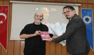 Öğrencilerin yoğun ilgi gösterdiği programın sonunda Rektör Yardımcısı Prof. Dr. Yusuf Çınar, Sanatçı Ahmet Sula’ya çiçek ve Üniversite Yayınlarınca basılan Nymphaeus’tan Batman’a kitabı hediye etti.