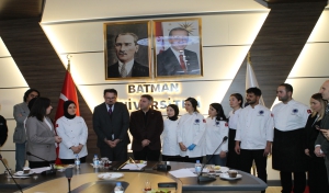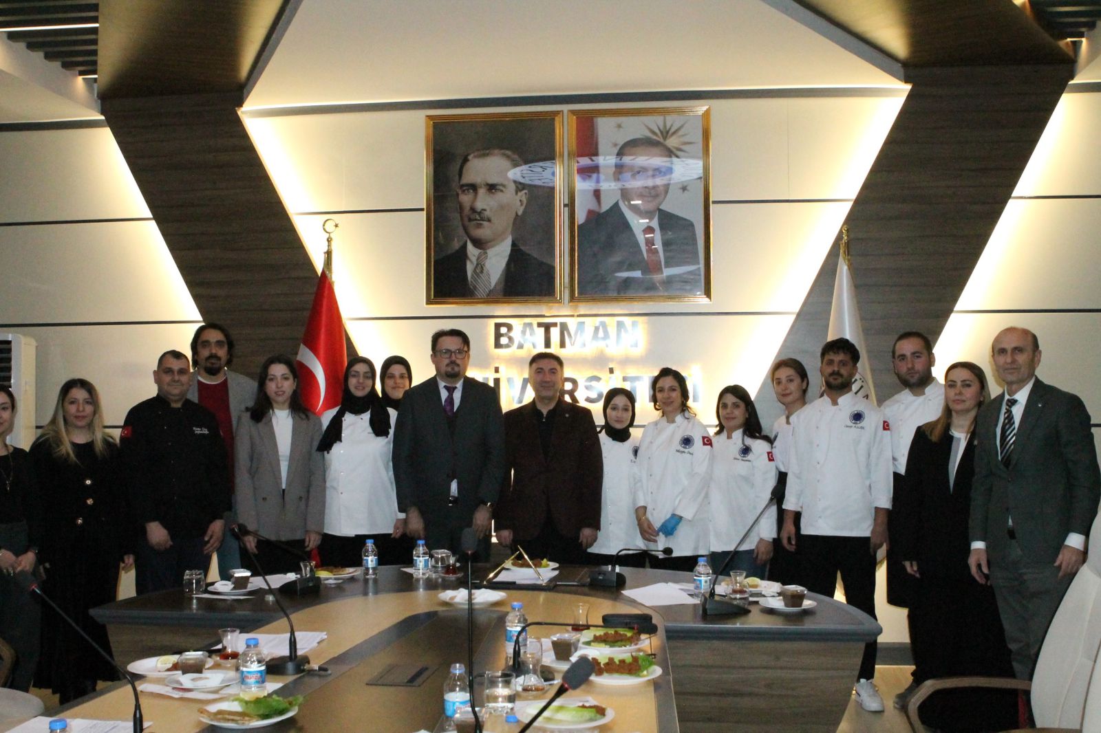 Üniversitemiz Turizm Fakültesi Gastronomi Bölümü ile Hasankeyf Meslek Yüksekokulu Pastacılık ve Ekmekçilik Programı öğretim elemanları ve öğrencileri tarafından hazırlanan yöresel lezzetler senato üyelerine ikram edildi. Batı Raman Kampüsü Rektörlük Binası Senato Salonu’nda gerçekleştirilen haftalık senato toplantısında, öğretim elemanları ve öğrenciler tarafından hazırlanan yöresel lezzetler senato üyelerinin beğenisine sunuldu. Etkinlik kapsamında senato üyelerine çiğköfte, şambörek, havdel tatlısı ve Dicle taşı kurabiyesi ikram edildi. Öğrenci ve öğretim elemanlarının Üniversitemiz gastronomi mutfaklarında hazırladıkları ikramlıklar senatörler tarafından beğeniyle karşılandı.