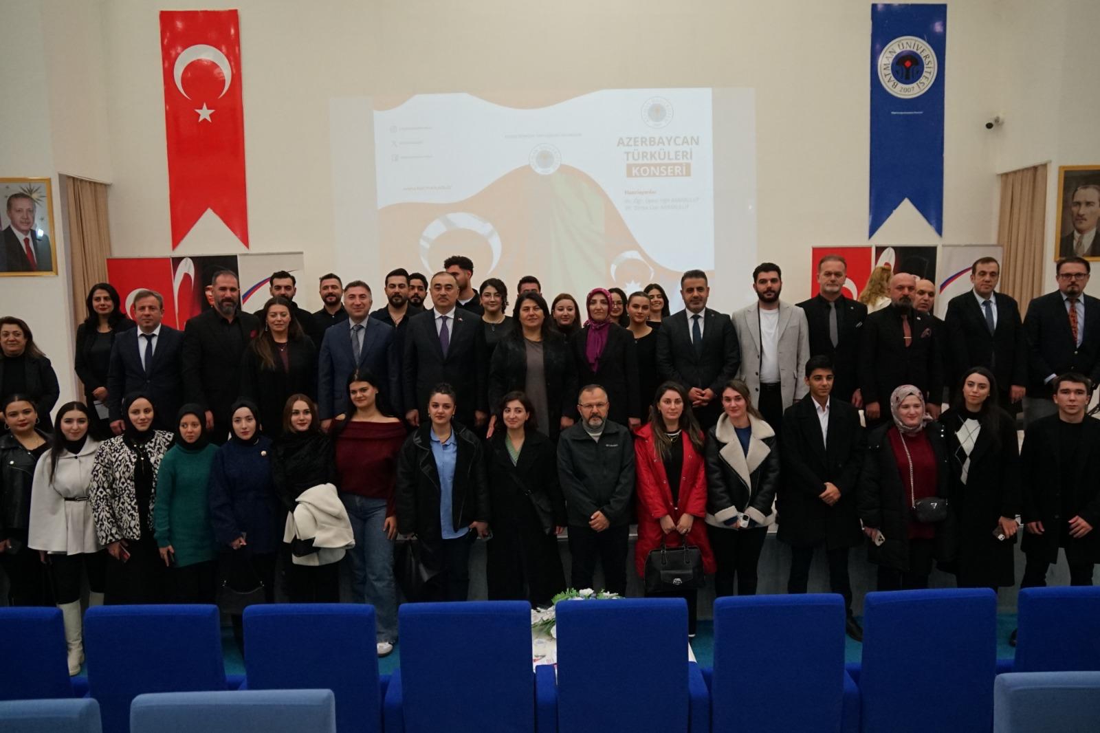 Üniversitemiz Güzel Sanatlar Fakültesi Müzik Bölümü öğretim üyeleri Dr. Öğr. Üyesi Yiğit Karabulut ve Dr. Derya Can Karabulut ile öğrencilerinin solo performanslarıyla sahne aldığı konserde; Ay Qız, Nazende Sevgilim, Axşam Mahnısı, Iğdır’ın Al Alması, Çırpınırdı Qara Deniz ve Qarabağ başta olmak üzere Azerbaycan ve Anadolu müziğinin seçkin eserleri seslendirildi.