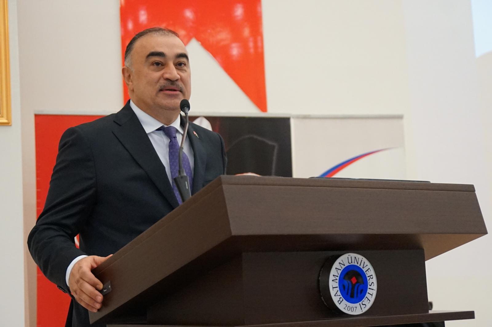 Programın açılış konuşmasını yapan Rektör Prof. Dr. İdris Demir, Türkiye ile Azerbaycan arasındaki bağların güçlü bir kardeşlik temeline dayandığını vurgulayarak, “Bizim aramızda sınırlar değil, sevgiler vardır. İki devlet olabiliriz ama tek bir milletiz. Aynı kaderin ve aynı geleceğin insanlarıyız. Türkiye ve Azerbaycan’ın ortak çalışmalarıyla bilimin, kültürün, enerjinin ve kardeşliğin yükseldiği bir geleceği birlikte inşa edeceğimize inanıyorum.” ifadelerini kullandı. Konser öncesi öğrencilere kısa bir konferans veren ve bu kapsamda Üniversitemizin bölgesinde güçlü bir üniversite olduğunu vurgulayan Büyükelçi Dr. Reşad Memmedov, “Batman Üniversitesi bünyesindeki öğrencilerle ve Sayın Rektörümüzle her zaman görüşmelerimiz olmaktadır. Büyükelçiliğimiz ile Batman arasında sürekli bir iletişim vardır. Batman Üniversitesi ile Azerbaycan üniversiteleri arası iş birliklerinin geliştirilmesi yönünde görüşmeler yürütmekteyiz. Bugün bu program sayesinde benim için de önemli bir fırsat oluştu. Azerbaycan’ı daha yakından tanıtma ve Türkiye–Azerbaycan ilişkilerine katkı sunma imkânı bulduk. Batman Üniversitesi Rektörü Sayın Prof. Dr. İdris Demir’e misafirperverlikleri için teşekkür ederim” dedi. Konuşmasının devamında öğrencilerin sorularını yanıtlayan Büyükelçi Dr. Memmedov, Türkiye ve Azerbaycan’ın bölgesel ve küresel iş birliği çerçevesinde hareket eden kardeş iki ülke olduğunu vurgulayarak Cumhurbaşkanımız Sayın Recep Tayyip Erdoğan’ın ülkelerine olan güçlü destekleri üzerinde durdu.