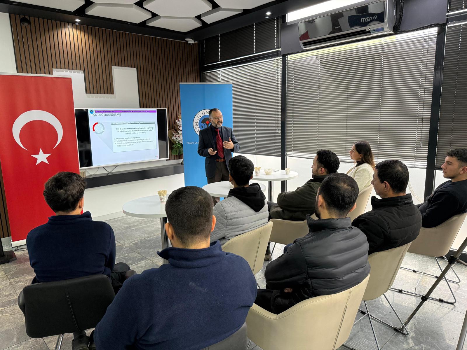 Üniversitemiz Bilim İletişimi Ofisi tarafından yürütülen Bilim Kafe etkinlikleri kapsamında, iş sağlığı ve güvenliği alanında farkındalığı artırmak, risk yönetimi süreçlerinin önemine dikkat çekmek ve güvenlik kültürünü güçlendirmek amacıyla “İş Sağlığı ve Güvenliğinde Risk Yönetimi” başlıklı bilgilendirme etkinliği gerçekleştirildi. Araç bakım-onarım hizmeti veren ve 25 personel ile faaliyet gösteren MSA Otomotiv’de gerçekleştirilen programa, Mühendislik-Mimarlık Fakültesi Makine Mühendisliği Bölümü öğretim üyesi Prof. Dr. Hamit Adin konuşmacı olarak katıldı. İş sağlığı ve güvenliğinin insan davranışları, çalışma ortamı ve yönetsel yaklaşımlar gibi unsurların ele alındığı söyleşide Prof. Dr. Hamit Adin, İSG yönetim sistemlerinin tehlikeleri tanımlamak, riskleri değerlendirmek ve uygun kontrol tedbirleri geliştirmek üzerine kurulu bir yapı olduğunu vurguladı. Günlük çalışma koşullarından doğan tehlike ve sağlık risklerini en aza indirmenin hem çalışan sağlığını hem de işletme güvenliğini koruduğunu belirten Prof. Dr. Adin, riskler gerçekleşmeden önce alınan önlemlerin ve güçlü bir risk farkındalığı kültürünün kazaları azaltmada belirleyici olduğunu ifade etti. Uluslararası Çalışma Teşkilatı (ILO) verilerinin iş kazalarının büyük bölümünün öngörülebilir olduğunu gösterdiğini hatırlatan Prof. Dr. Adin, bu kazalarda insan hatası, düşük risk algısı ve yetersiz eğitimin öne çıktığını aktardı. Programda ayrıca kişisel koruyucu donanım kullanımı, periyodik sağlık muayeneleri, risk değerlendirmesi ve kimyasal, fiziksel, biyolojik ile ergonomik risklerin mevzuata uygun yönetimi gibi başlıkların kritik öneme sahip olduğu vurgulandı. Türkiye’de iş güvenliği uygulamalarının gelişimi ve karşılaşılan yapısal sorunlara da değinen Prof. Dr. Adin, özellikle üretim yoğun sektörlerde güvenlik bilincinin kurumsal kültüre yerleşmesinin hayati olduğunu, sürdürülebilir güvenlik kültürünün ise doğru analiz, sürekli eğitim ve disiplinli uygulamalarla mümkün olabileceğini belirtti. Risk yönetimi süreçleri ve güvenlik kültürünün geliştirilmesine yönelik bilgilerin paylaşıldığı program, toplu hatıra fotoğrafı çekimin ardından sona erdi.